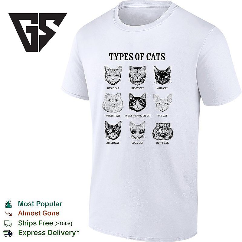 Be the first to review “Types Of Cats Basic Cat Judgy Cat Void Cat Wizard Cat Knows How You Die Cat Bat Cat Aristocat T-Shirt” Cancel reply