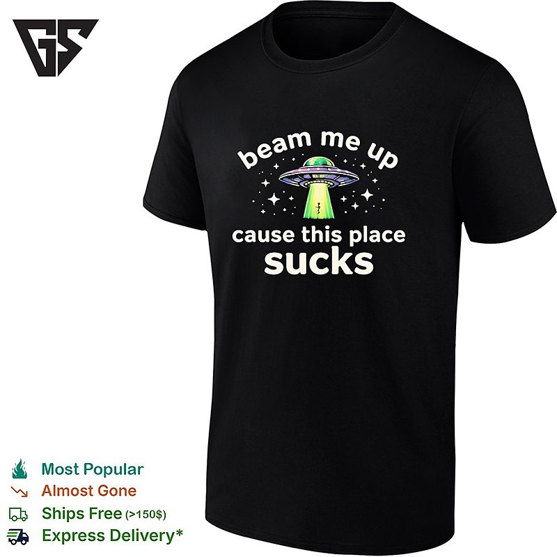 Join the movement with our Ufo Abducting A Alien Beam Me Up Cause This Place Sucks T-Shirt – the sports tee that’s taking social media by storm! This trending design captures the energy and passion that’s got everyone talking. Whether you’re at the game, hitting the gym, or just showcasing your athletic style, this viral sensation is your ticket to staying ahead of the curve.