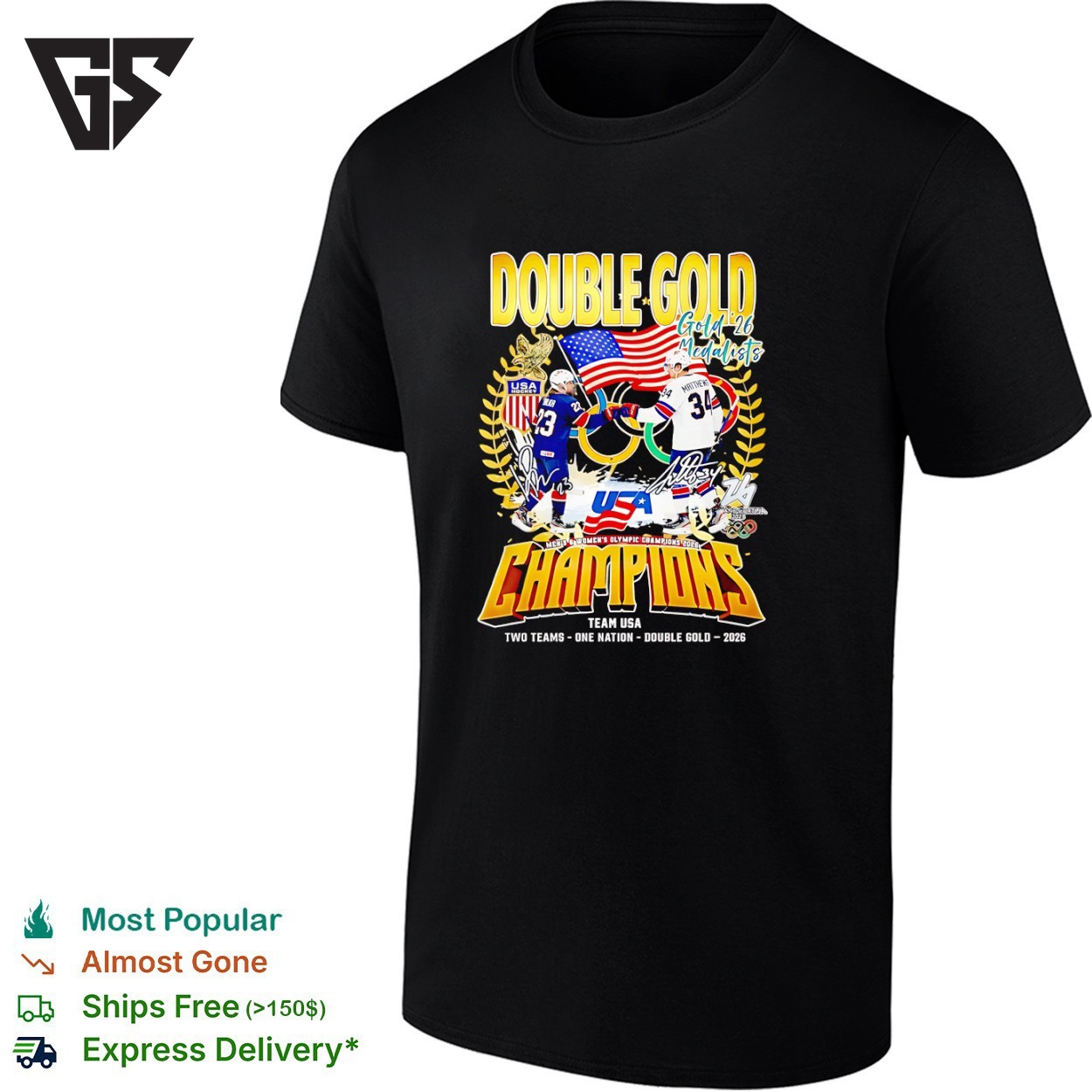 Be the first to review “USA Hockey Team Double Gold Champions Two Teams One Nation Double Gold 2026 Graphic T-Shirt” Cancel reply