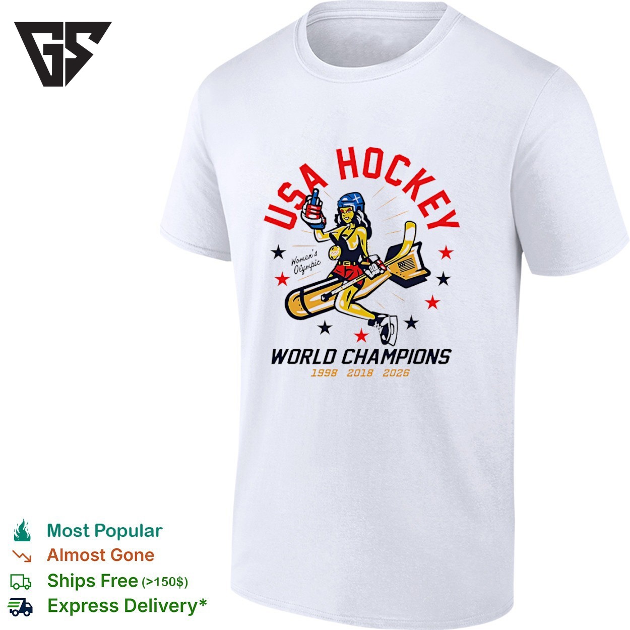 USA Hockey Womens Olympic World Champions 3 Time 98 18 26 T-Shirt-Copy