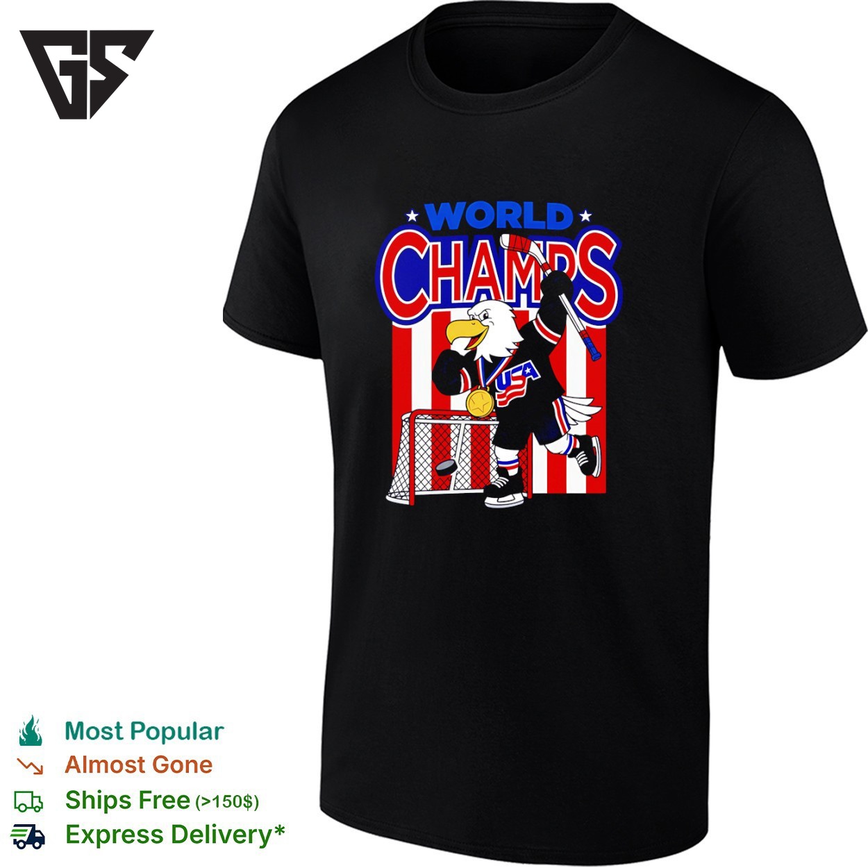 Be the first to review “USA World Champs Mascot Holding Hockey Stick T-Shirt” Cancel reply