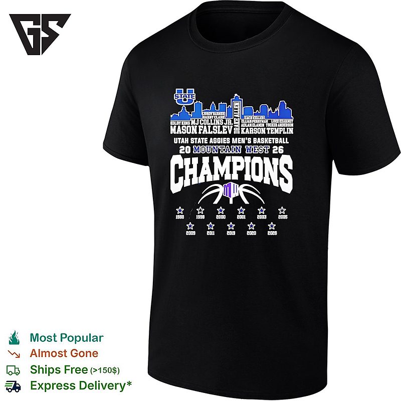 Utah State Aggies Mountain West Champions 2026 Player Name City Skyline T-Shirt