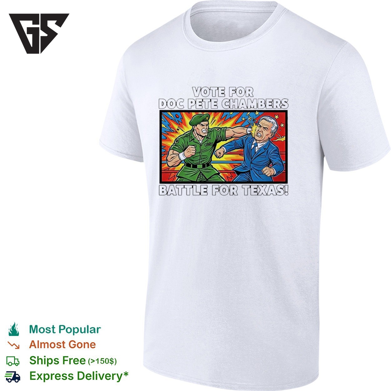 Be the first to review “Vote For Doc Pete Chambers Battle For Texas T-Shirt” Cancel reply