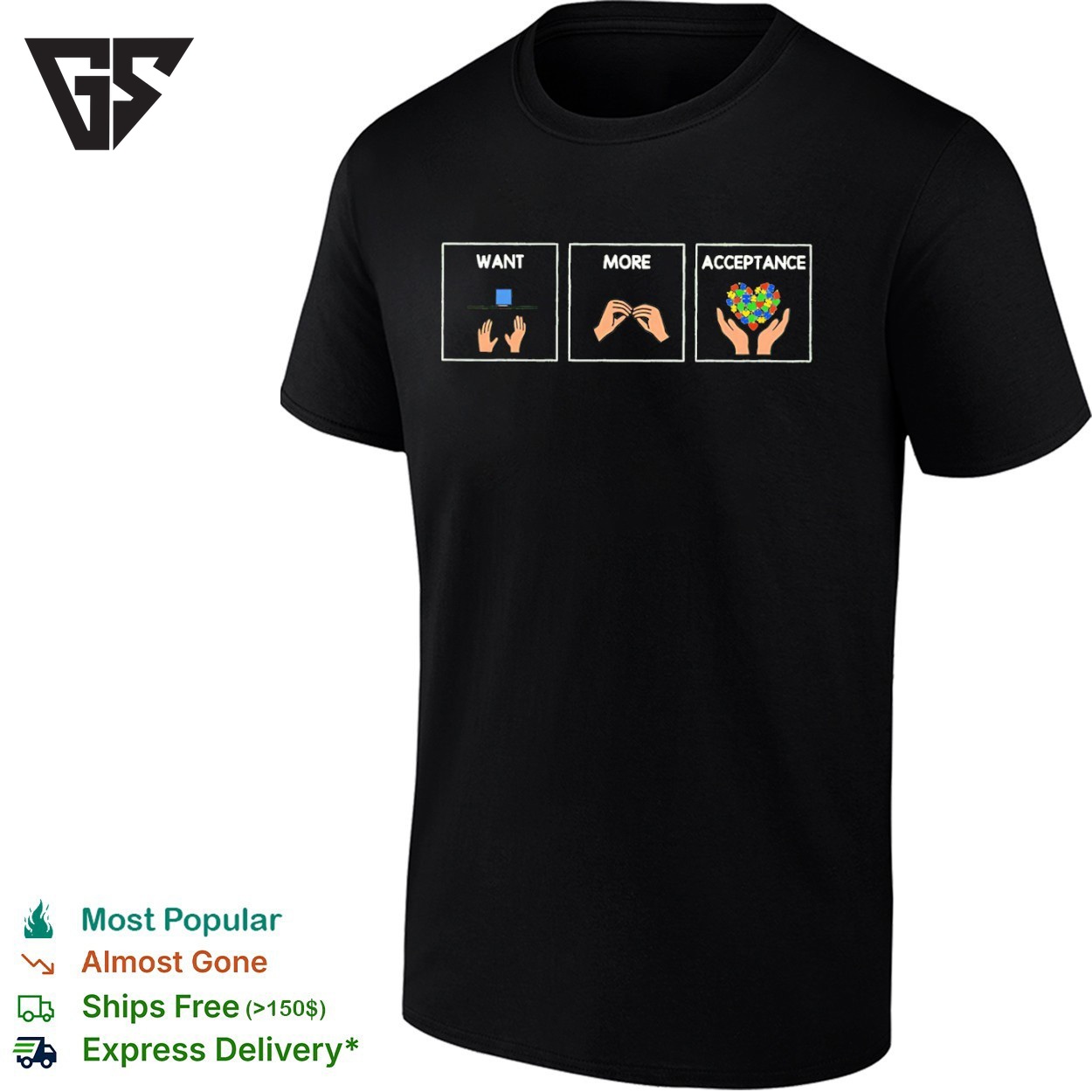 Be the first to review “Want More Acceptance Hands Sign T-Shirt” Cancel reply