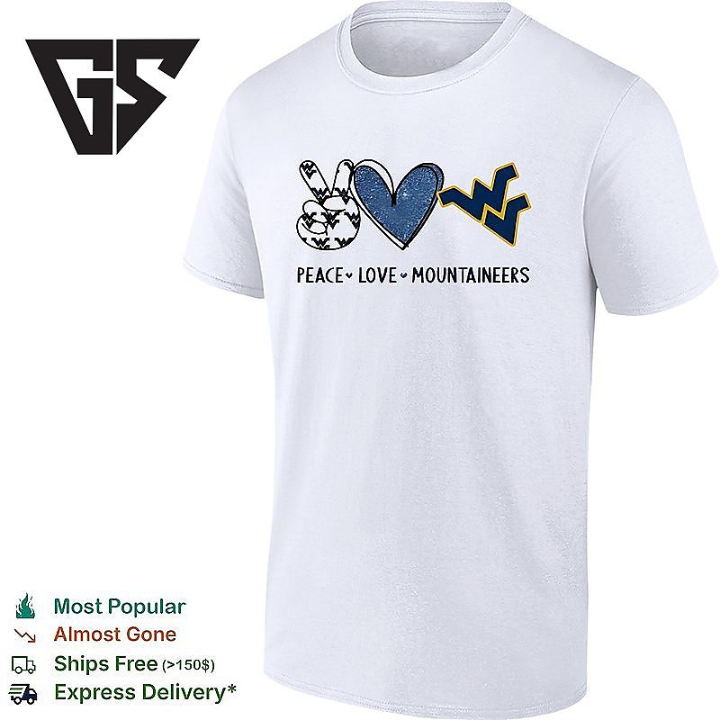 West Virginia Mountaineers Football Peace Love Mountaineers Sign Heart Shape And Logo T-Shirt
