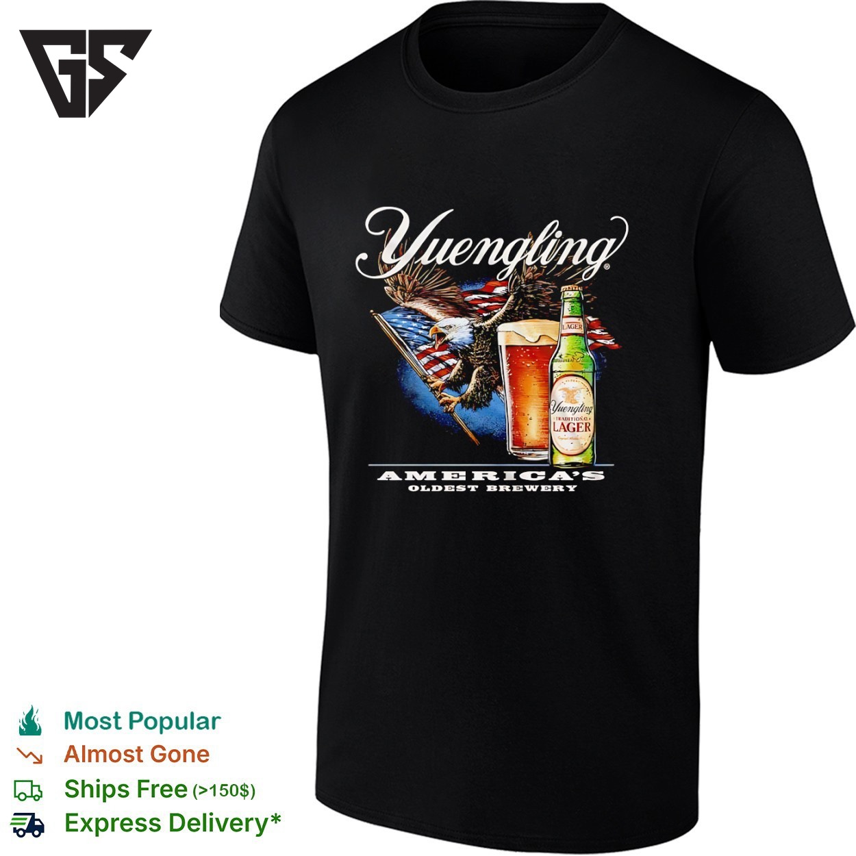 Yuengling Traditional Lager Beer America’s Oldest Brewery Eagle Holding USA Flag T-Shirt